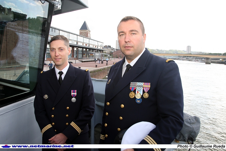 Le lieutenant de vaisseau Nicolas Simon et le lieutenant de vaisseau Alvarez nouveau et ancien commandant du