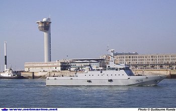 31 janvier 2006 : Collision en Manche Le vraquier maltais GENERAL GROT ROWECKI est entré en collision avec le chimiquier des îles Marshall ECE, dans une zone située à 50 nautiques (90 kilomètres) à l'ouest de Cherbourg. Le vraquier GENERAL GROT ROWECKI rattrapait le chimiquier ECE dans le rail montant des Casquets. L'ECE a immédiatement signalé une voie d'eau avec une gîte évolutive. Le CROSS de Jobourg a lancé une importante opération de sauvetage et d'assistance avec la mise en œuvre des moyens suivants : Deux hélicoptères " SEAKING " des gardes côtes britanniques arrivés sur zone vers 05h locales, qui ont procédé à l'hélitreuillage des 22 membres d'équipage du chimiquier ECE ; l'hélicoptère Dragon 50 de la sécurité civile pour l'envoi d'une équipe pluridisciplinaire d'évaluation et d'investigation sur zone ; Le remorqueur Abeille Liberté ; Le PSP Pluvier ; Le patrouilleur de Gendarmerie maritime Glaive et le CMT Lyre ont appareillés de Cherbourg pour se rendre sur zone ; La vedette de la société nationale de sauvetage en mer Jean Desnoylle de la station de Goury a également pris la mer. Le préfet maritime de la Manche et de la mer du Nord a ordonné en cours d'après-midi la prise de remorque du chimiquier Ece par l'Abeille Liberté. La remorque a été passée vers 15h30. Le convoi se dirige dans un premier temps vers la Baie de Seine, escorté par le patrouilleur de service public Sterne en provenance de Brest. Le comportement de l'attelage et l'évolution a priori favorable de la météorologie détermineront le lieu de destination du convoi. (Source : http://www.premar-manche.gouv.fr/) Le VAE Thierry d'Arbonneau, Alfost, préside le 16 juillet à bord du Pluvier une cérémonie en hommage aux marins du sous-marin Doris, coulé corps et biens au large des côtes néerlandaises le 8 mai 1940. L'épave du sous-marin avait été localisée et identifiée par la Cassiopée en novembre 2003. (Brèves MN) Octobre 2003 : Quatre mois de réparation