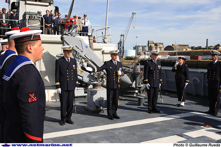 Cérémonie de prise de commandement à bord du patrouilleur de service public Pluvier à Dieppe. (17 août 2012).