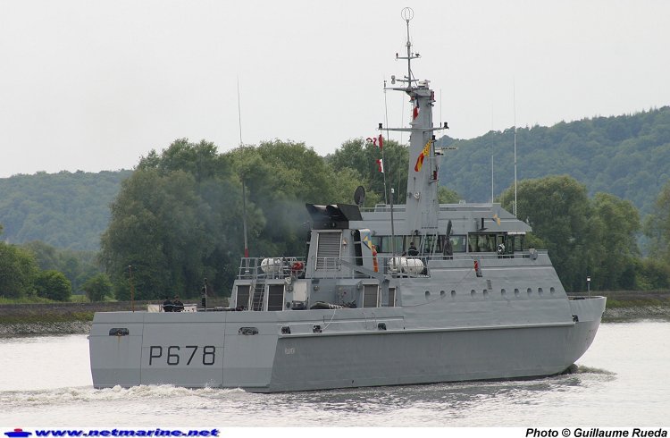 Le patrouilleur de service public Pluvier à l'appareillage de Caudebec-en-Caux (mai 2003).