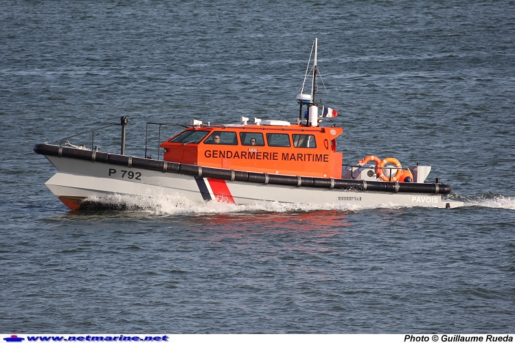 La vedette de surveillance maritime et portuaire (VSMP) Pavois en patrouille dans le port du Havre (juillet 2011)
