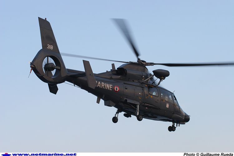 Le Dauphin n° 318 en version Pédro vient de décoller du porte-avions Charles de Gaulle à la tombée du jour. (juin 2007)