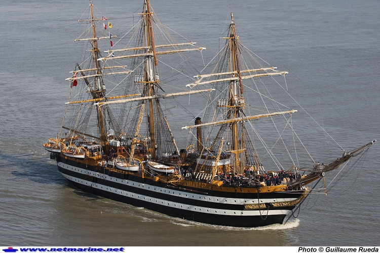 Le navire école italien Amerigo Vespucci remonte la Seine vers Rouen pour l'Armada 2008 (juillet 2008)
