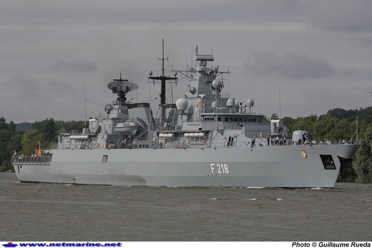 La frégate allemande Meckenburg Vorpommern remonte la Seine vers Rouen pour l'Armada 2008 (juillet 2008)