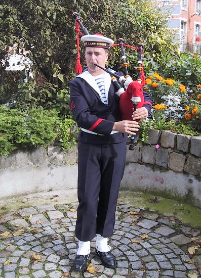 : Le matelot Fréderic Lamandé à la cornemuse (30 septembre 2001).