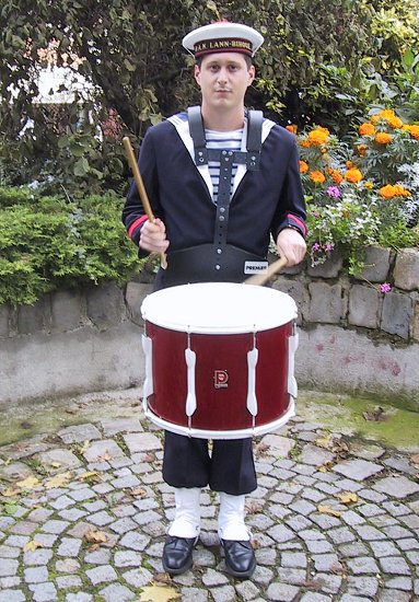 : Le quartier-maître de 2ème classe François (Fanch) Le Cornerie au tambour tenor (30 septembre 2001).