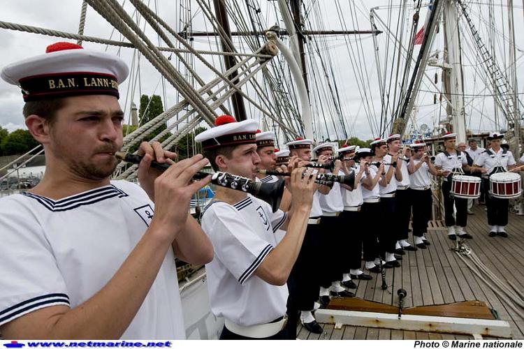 à Lorient à bord du Belem. (photo Bagad de Lann Bihoué Jean Jacques Le Bail 2010)