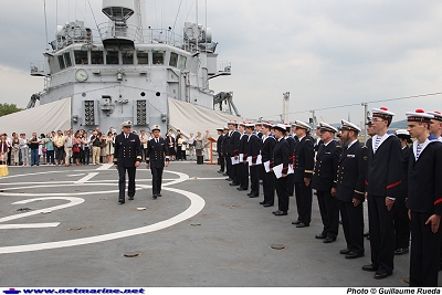 CV A. Doucet et le CF T. Roy passent en revue les stagiaires de la PMM.