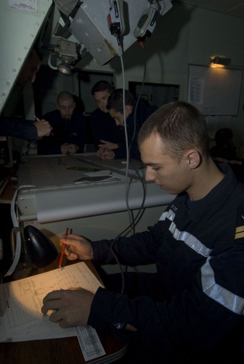 Le SM Rott au CO du porte-hélicoptères Jeanne d'Arc. (23 décembre 2007 photo Marine nationale -maître principal Le Ny )