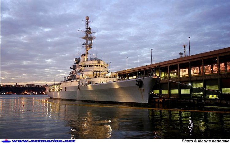 Le porte-hélicoptères Jeanne d'Arc. amarré au pier 92 à New York (27 décembre 2007 photo Marine nationale -maître principal Le Ny )