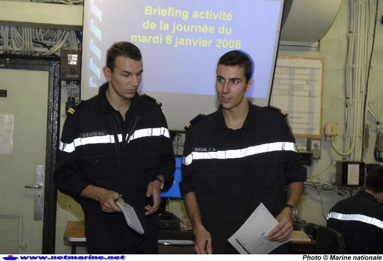 Les EV1 de Catuelan et Barraud lors du briefing opérations à bord de la Jeanne d'Arc (7 janvier 2008 photo Marine nationale -maître principal Le Ny )