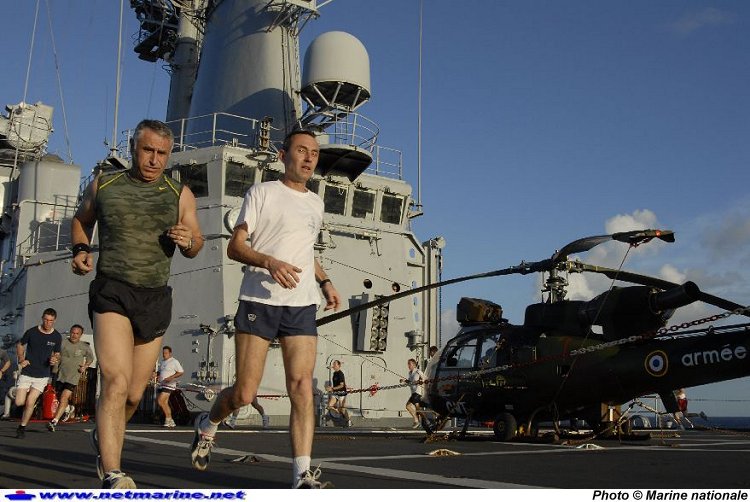 Séance de footing à bord du porte hélicoptères