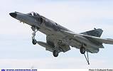 par le bâtiment. Décollant pour la première fois en pleine post-combustion, l'appareil