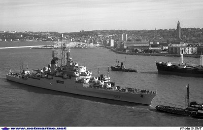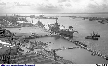 ![]() Le porte-avions Clemenceau à quai au Havre (1962). |