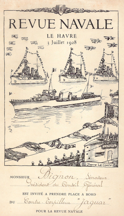 Couverture du programme de la Revue navale du Havre du 3 juillet 1928 Cet exemplaire etait celui du Sénateur Bignon, Président du Conseil Général. (Collection Guillaume Rueda)