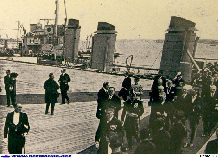 Le président Doumergue quitte le CT Jaguar à l'issue de la Revue navale du 3 juillet 1928 au Havre.