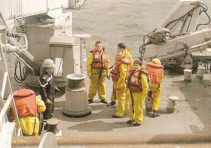 L'infirmière au poste de manoeuvre plage avant et le commis à la mise à l'eau du