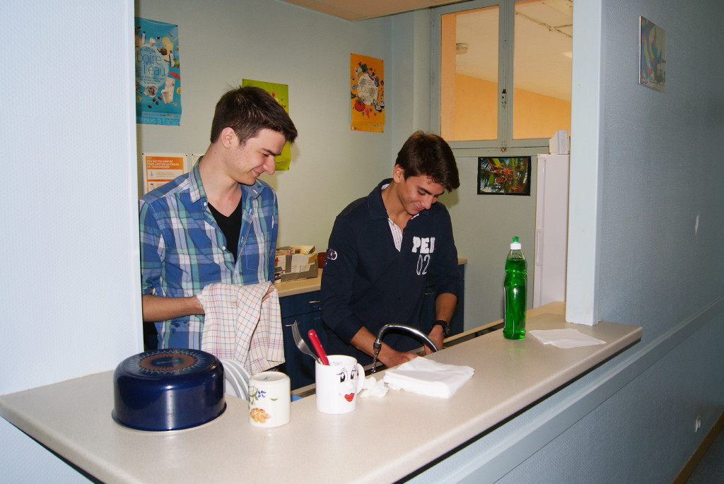s’affaire tandis que les stagiaires observent et découvrent les métiers du
