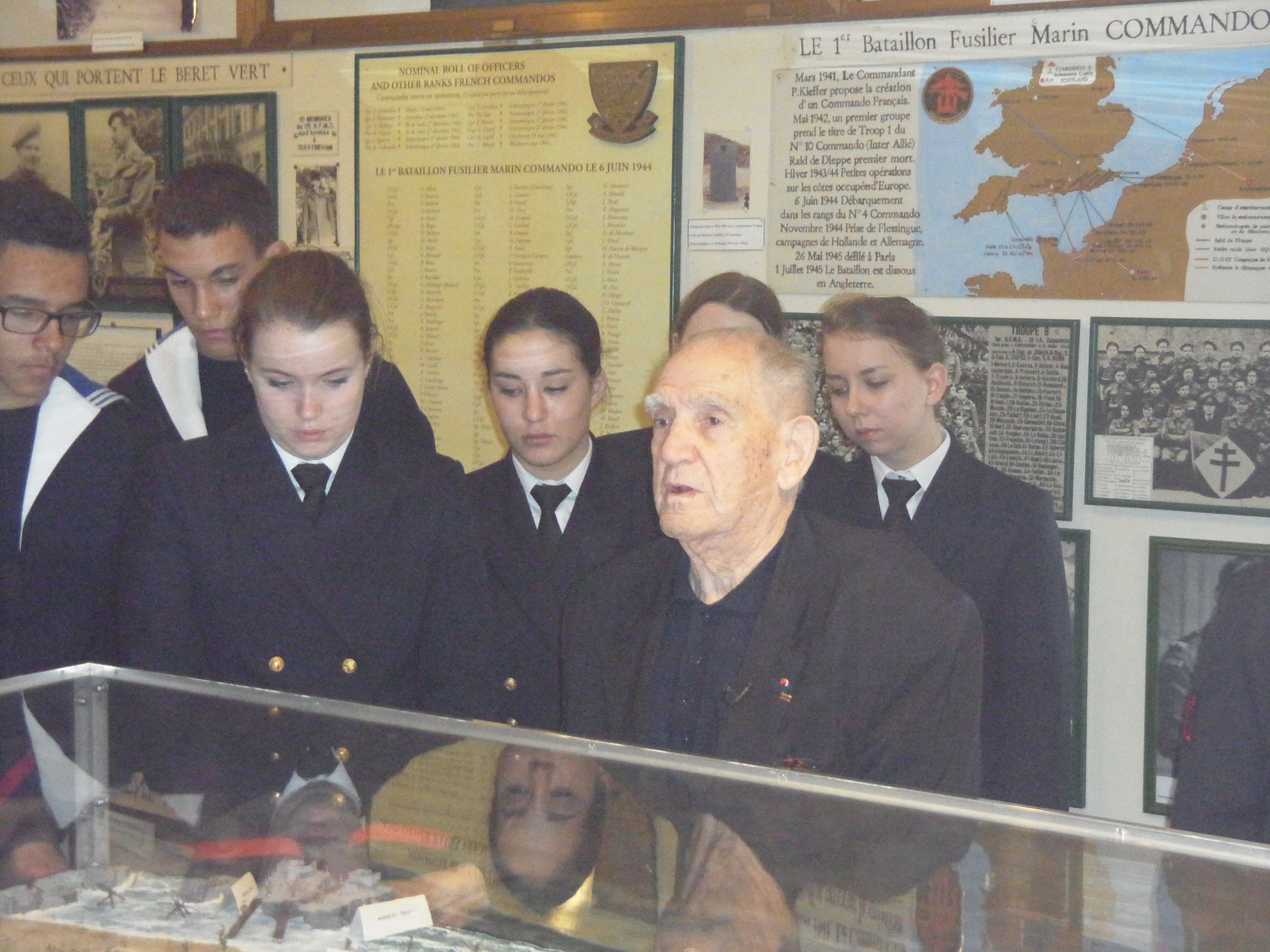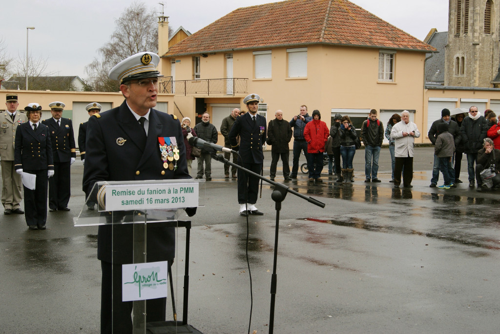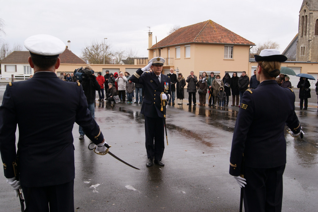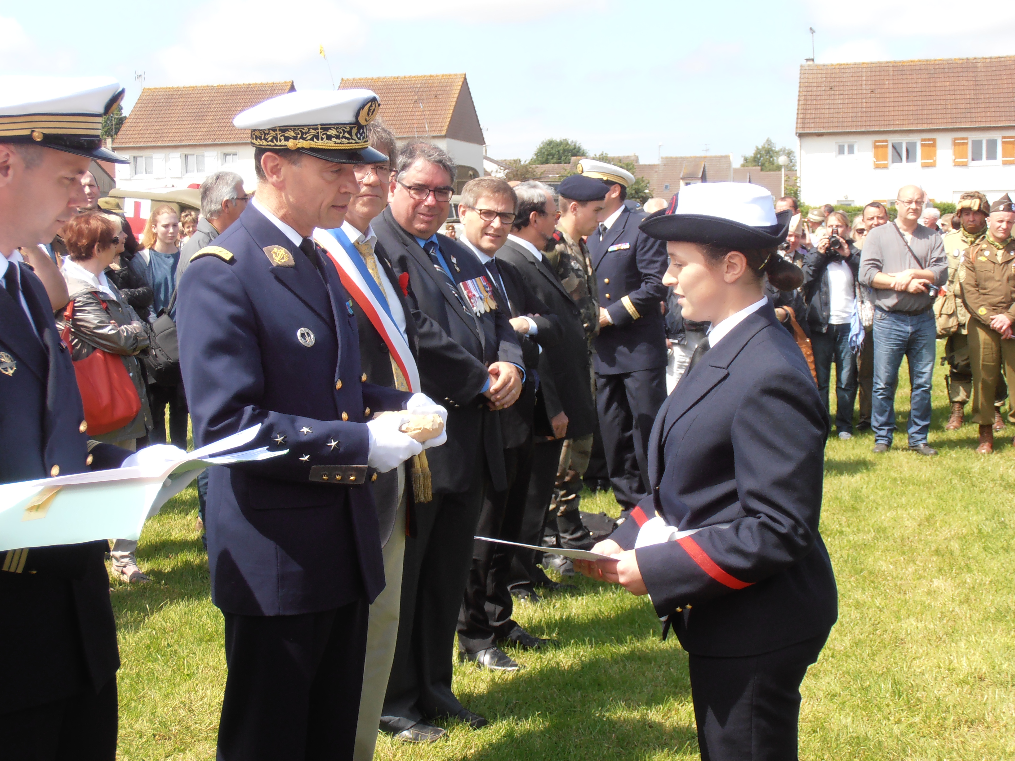 | Citation : « "Le 7 juin dernier, les stagiaires de la PMM "Amiral Hamelin", Caen-Epron se sont vus remettre leurs insignes et diplômes de fin de cours. C'est à Sannerville (Calvados) que cette cérémonie a eu lieu en présence de militaires d'active de la 3e division d'infanterie britannique. En effet, il était important pour tous que la PMM puisse participer à sa manière aux commémorations du 6 juin 1944. Présidée par l'Inspecteur général des affaires maritimes Laurent Courcol la cérémonie s'est déroulée en présence du Maire de Sannerville, Christian Pielot et de nombreuses personnalités civiles et militaire. Ce fut pour les stagiaires et les familles un grand moment d'émotion au moment même ou nous célébrons le 70e anniversaire du débarquement. Au préalable, les stagiaires avaient participé à une cérémonie du souvenir marquée par un protocole nouveau pour nous tous : celui de la division d'infanterie britannique et la venue d'un Spitfire de la Battle of Britain Memorial Flight. Enfin, la matinée s'est terminée auprès de jeeps et autres automobiles d'époque du Juno Military Club et d'un parachutage effectué par le « The Pathinders Europ Group » à partir d'un Dakota. Cela restera un grand moment de la vie de la PMM 2013-2014, nos stagiaires pourront dire plus tard : "le 70e ... j'y étais !" > Fin de citation |