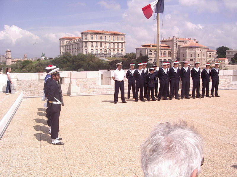 capitaine de vaisseau Morillon passa en revue la garde d'honneur