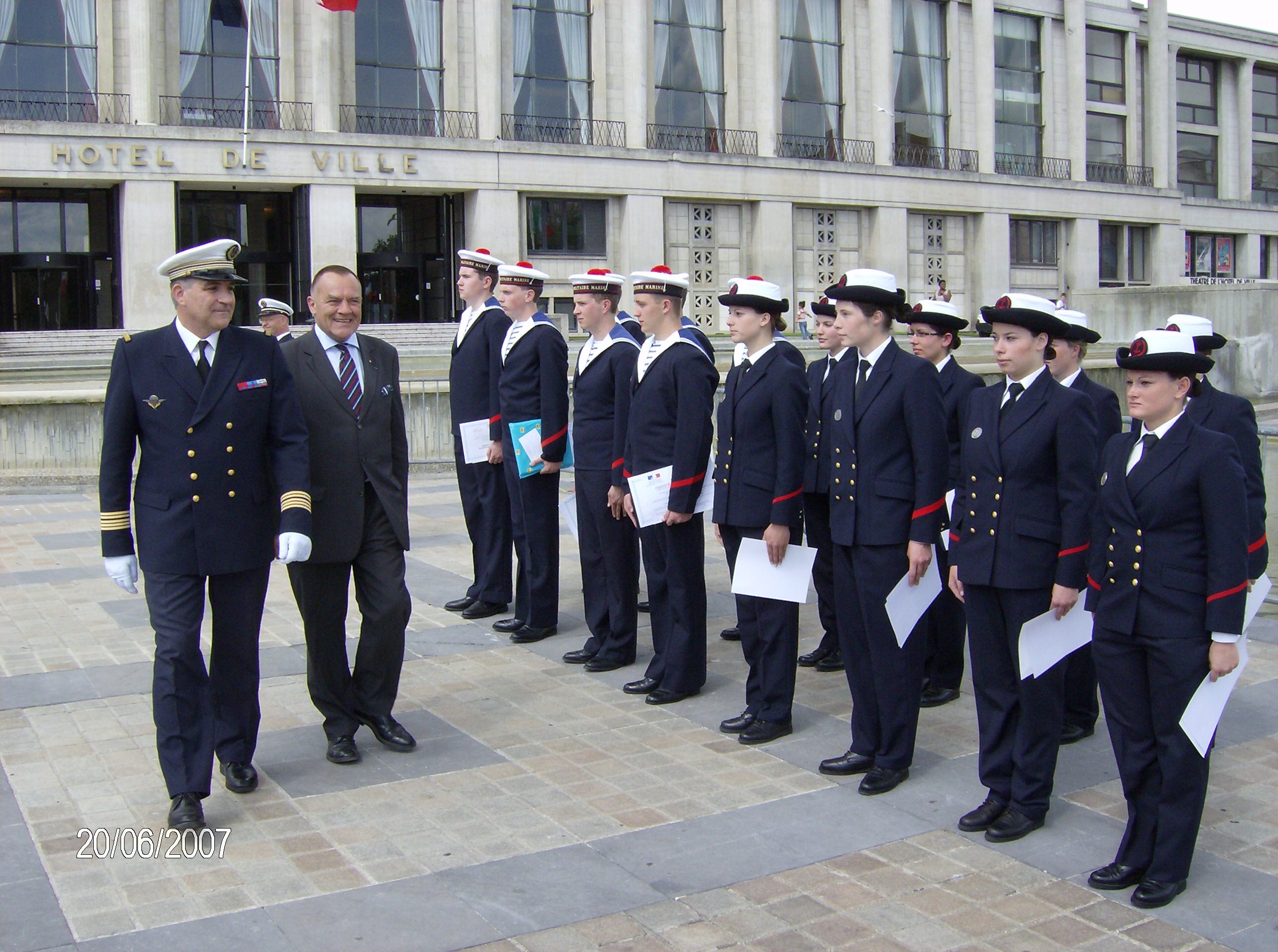Le CV Alain Doucet et le LV Tilloy passent en revue la PMM Le Havre (8 mai 2007)