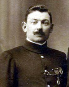 Chef de l'équipe des brancardiers ; grièvement blessé par de multiples atteintes d'éclats d'obus, ne se fit panser qu'en tout dernier lieu et se comporta au milieu des autres blessés avec un calme et une dignité exemplaires.