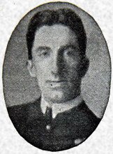 A fait preuve du plus grand sang-froid au moment de l'explosion d'une mine qui a fait sombrer son torpilleur et a pu, grâce aux mesures judicieuses qu'il a prises avec décision, assurer le sauvetage de la plus grande partie de son équipage. A montréune abnégation digne d'éloges, en abandonnant, bien que nageur ordinaire, le baril-galère qui le soutenait à un de ses hommes sur le point de couler.