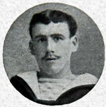 Exemple d'entrain et de bonne humeur au milieu du danger. S'est particulièrement distingué par son courage en allant élinguer des mines ennemies offensives pour les remorquer et les détruires, et lors de l'attaque par la torpille d'une flottille ennemie au cours de laquelle un torpilleur a été atteint.