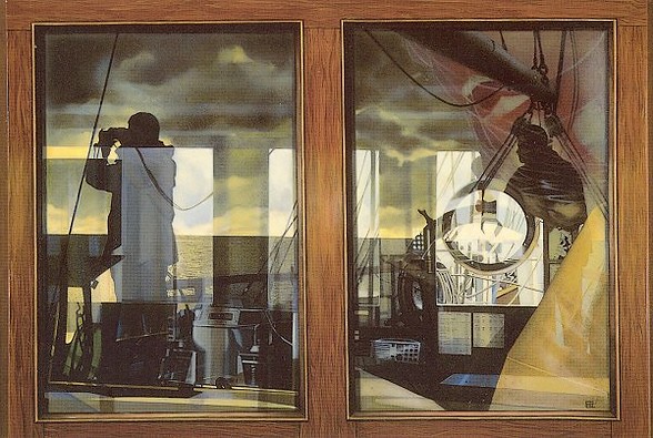 Le Belem. Reflets dans la Timonerie huile sur toile - 116 x 81 cm - 1998