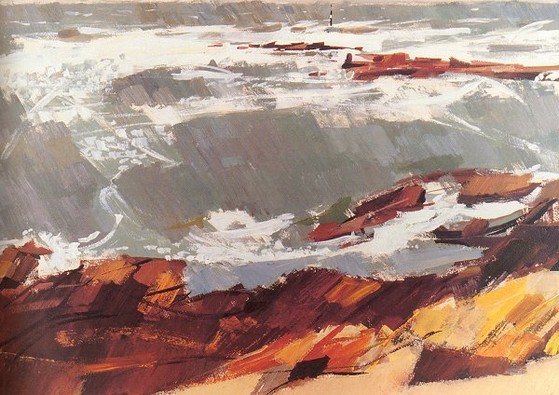 Tempête à la pointe du Cabellou, 1974 - Acrylique sur Arches, 54 x 75, collection de l'artiste