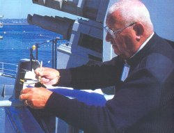 Toute sa vie sera marquée par ce qu'il appelle affectueusement, et même avec complicité, la ferraille. Si avec le temps, l'éventail de sa palette s'est élargi, on retrouve partout et toujours ce goût prononcé pour le solide, le concret, tout ce qui laisse deviner la charpente des choses. Pas de paradoxe chez Marko : il peint avec le même amour le nu féminin, les demeures des hommes, les réussites de leur génie inventif. Il y a sans doute une volupté réelle, bien que différente, à peindre les coques des navires, le vol des avions, des générateurs de centrales nucléaires, et les courbes gracieuses d'une femme ou la mélancolie d'un champ beauceron. Le monde du mécanique et de la rigueur rnilitaire dégage une émotion. La couleur n'y manque jamais, le mouvement la traduit, et l'utile a des résonances avec le sensible. Serge Marko rend compte ; il est en cela ce "reporter supé rieur" dont parlait avec entrain Baudelaire, évoquant un peintre de sa génération. Ses croquis de voyage, effectués à bord des navires de la Royale en témoignent. Pas de faux effets, une juste appréciation des mesures ; il suit fidèlement le sujet, sans omettre les détails, sans rajouter non plus de quoi bluffer les ignorants. A ses bateaux, il insuffle discrètement de la vie, c'est à dire des frémissements vrais, ceux de la nature. On ne triche pas avec elle; chaque élément est à sa place et dans sa fonction. Pas de fantasie possible quand un avion apponte, ou avec la rade de Toulon. Mais, voilà son art, il évite la sécheresse du travail d'architecture, du plan calculé ; il s'octroie la liberté de peindre à sa manière. Les Tahitiennes endormies sont vues telles quelles ; le dessin demeure collé à ce qui est support de leur grâce : les robes, la végétation, les teintes de la peau. Tout réside dans l'angle suivant lequel il va définir ses observations. Le reste est affaire de talent ; la plume et le pinceau reproduisent aisément ce que le regard à clairement défini. Etudiant aux Beaux-Arts, Serge Marko se lance, jeune, dans le dessin publicitaire. Il suit des cours de l'Académie Frochot et commence à exposer, à Paris, à Anvers ; les galeries lui ouvrent leurs portes, un peu partout dans le monde. Et les médailles jalonnent cet itinéraire au long cours. Peintre officiel de la marine et de l'air, Marko obtient prix et récompenses que sa modestie naturelle évite de mentionner. La mer impose à quiconque du métier ; elle ne pardonne ni aux mauvais marins ni aux artistes qui ne l'aiment pas. C'est en Bretagne que Marko la découvre, à l'heure où les thonniers aux voiles brunes et bleues rentrent au port. Depuis lors, le lien est constant. En définitive, ce qui séduit chez ce terrien aux allures de grand large, c'est la vérité du mouvement. Il est capté dans l'instant; pas de simulacre. Le grand pavois claque au vent, les grues travaillent aux côtés de l'aviso, les radars tournent, les ordres partent de la passerelle. La liberté du trait, une poésie presque touchante nimbent cette "esthétique industrielle". L'aquarelle autorise, avec ses exigences, toute latitude d'expression. De quelques traits d'encre, il lui donne de la profondeur. Les quais de Seine où repose le trois mats rêvant d'exotisme s'agrandissent au travers des platanes centenaires et diaphanes. Une croisée de fenêtre suggère que l'on observe la rue, mais de chez soi. Pas de coupure dans les plans, une seule continuité. Ainsi le fonctionnel a sa langue, et par la magie des couleurs, il nous parle. La stylisation extrême dessèche ; l'expression adaptée à un réel quelle peut transfigurer entraine les plus réticentes adhésions. Les pinceaux, les feuilles, les modèles ne sont plus que des moyens dociles de cette quête. "La réalité est terriblement supérieure à toute histoire, à toute fable, à toute divinité à toute surréalité ; il suffit d'avoir le génie de l'interprêter". Serge Marko, sans peut être l'avouer, a fait sienne cette phrase d'Antonin Arthaud. Dominique Vergnon