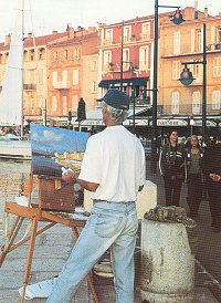 Il préfère peindre sur le motif, boude l’atelier et est devenu maître dans l'art de saisir sur le vif des lumières et des mouvements. Rares sont ceux qui, comme lui, décèlent avec justesse et équilibre la magie des lieux et des instants. En digne successeur de Marin Marie, sa peinture est très imprégnée de ses courses en solitaire mais tous les sujets lui sont bons (avions, paysages, natures mortes...) ![]()