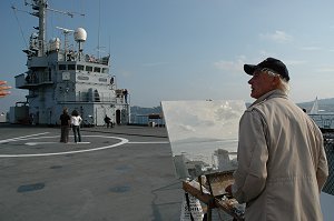 Peintre titulaire de la Marine nommé en 2003 (agréé depuis 1991) Galerie d'exposition permanente Galerie des Orfèves 66, quai des orfèves - 75001 PARIS Tel : 01 43 26 81 30 Elève aux Beaux-Arts, il a progressivement abandonné l'architecture pour l'aquarelle en plein air et la peinture. L’homme est un marin de longue date qui navigue sur ses propres bateaux dans le Finistère Nord, il a une prédilection pour la mer forte, les rafales de vent, les étraves dans la houle, les brisants sur les côtes, les lumières fugitives dans un ciel chargé.