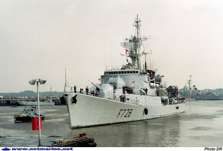 ![]() Derniers tours d'hélices pour l'aviso-escorteur Doudart de Lagrée à son arrivée à Lorient le 15 octobre 1991. Dans quelques instant le capitaine de frégate Gourlez de la Motte, commandant le bâtiment, annoncera le dernier « Terminé barre et machine ». Cet aviso sera mis en réserve spéciale le 28 octobre 1991. (Photo Renan Merieult).