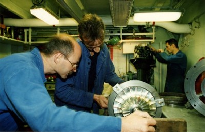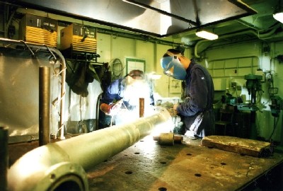 - Chaudronnerie : la mer a le défaut d'être salée, ce qui accélère la corrosion des coques et des circuits d'eau de mer. Les CMT sont moins touchés que les autres bâtiments car leur structure est en combiné verre-résine (CVR), mais la présence d'un soudeur compétent avec du matériel adéquat est appréciée et nécessaire sur tous les bâtiments. - Charpentage - Matières Plastiques - Voilerie : autrefois prévu pour la chasseurs dont la coque était en bois, l'atelier se tourne désormais également vers les matières plastiques, intervenant sur les embarcations pneumatiques, réalisant tentes et bâches de protection, même si l'activité principale est le travail courant du bois et du CVR. - Electricité : l'atelier assure l'entretien et la réparation des machines tournantes, notamment le rebobinage de moteurs électriques, les travaux de câblage et les travaux et contrôles du matériel d'instrumentation, les capteurs de pression, température, régulateurs de tension, la charge des batteries...