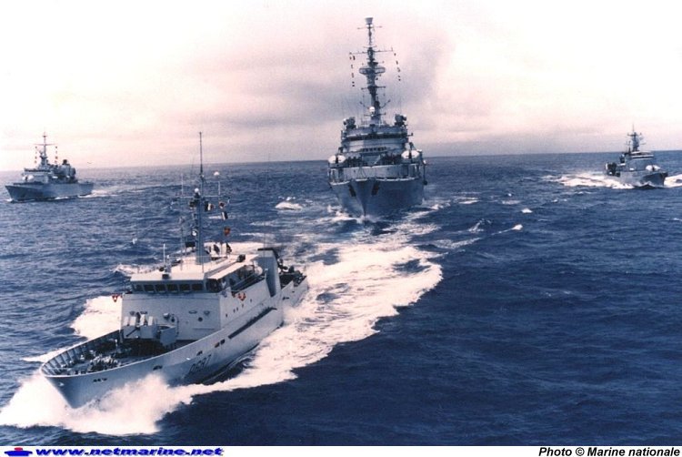 1993 : Entrainement de groupe entre Pitcairn et Tahiti avec le GEAOM. Porte-hélicoptères