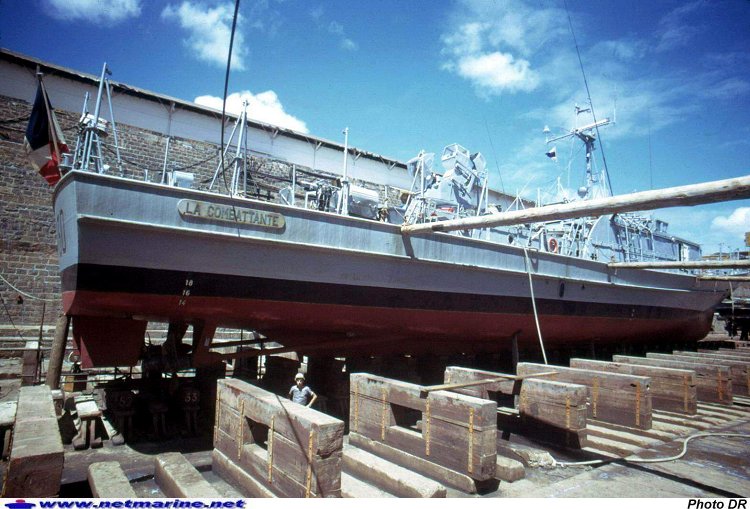 Le patrouilleur La Combattante au bassin à Diégo-Suarez (1973 - Photo Henri Poché).