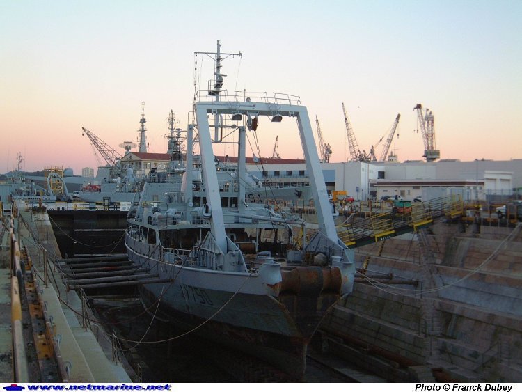 en carénage aux bassins Castigneau. Dans quelques jours, elle ressortira la carène entièrement nettoyée et repeinte (1er novembre 2002).