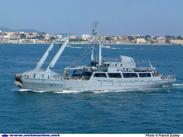 rentrant à plein vitesse vers son poste d'amarrage, à l'ilot Castigneau. Revenant d'une journée de travaux sur ancrages, un crapaud est suspendu à l'avant (17 juin 2004).