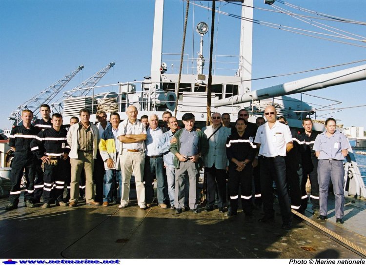réuni pour une "photo de famille" autour de ses anciens commandants à l'issue de son ultime sortie à la mer (5 octobre 2006 - photo Nathalie Rattier).