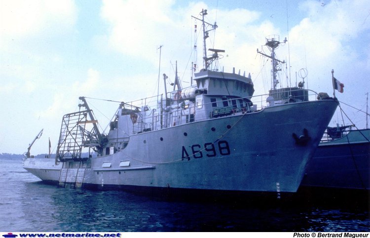 . On aperçoit distinctement le système mécanique de récupération des torpilles d'exercices qui flottaient en fin de tir (date inconnue).