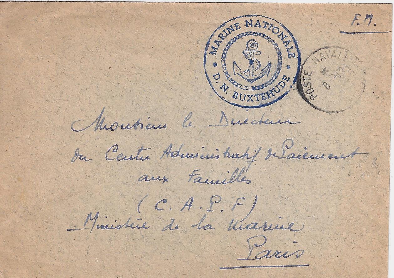 je viens de découvrir sur des enveloppes "Marine" la présence d'une délégation navale française à BUXTEHUDE dans le nord de l'Allemagne (proche de Hambourg).
