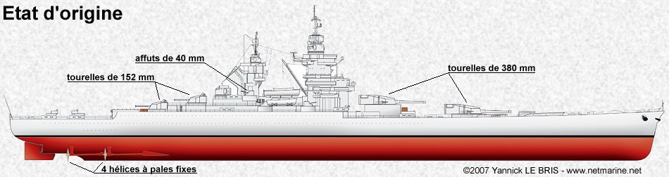 ; Pont : 130 à 170 mm, 40 mm ; Tourelle de 380 mm : 430