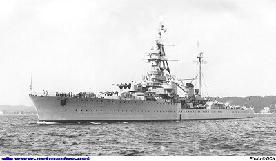 Le 14 avril 1944, le contre-amiral Lemonnier appareillait d'Oran avec les deux bâtiments à destination de la Grande-Bretagne. Le 18, les deux croiseurs se séparèrent. Le Georges-Leygues continua vers le nord, passa entre les Orcades et l'Ecosse, redescendit la côte est et mouilla le 19 dans la Tyne. Quant au Montcalm, il fit une première escale à Greenock, avant de gagner la Clyde de Scapa-Flow où il arriva le 20 ; il y fut rejoint le 28 par le Georges Leygues. Au cours de leurs visites des trois grandes rades britanniques, les 2 croiseurs avaient été surpris par l'importance des préparatifs du débarquement. Ils commencèrent immédiatement des exercices, au large de Scapa Flow et de Greenock, qui portèrent sur le tir contre-avions, le tir contre terre, l'exploitation des transmissions et accessoirement la navigation en compagnie de grands bâtiments. Le Georges Leygues manœuvra d'abord avec le Devonshire et le Jamaïca et ensuite avec le Nevada et le Tuscaloosa. L'importance des transmissions entraîna l'embarquement de 5 officiers de liaison alliés et de 9 opérateurs radio. Les exercices familiarisèrent le navire avec les nouveaux appareils, les changements de longueur d'onde et la procédure utilisée pour le tir contre la terre. Le 26 mai, non loin de Belfast, eut lieu une répétition générale de l'opération. Le Georges Leygues avait pratiqué le même entraînement dans un groupe constitué par le Glasgow, le Texas et l'Arkansas. Dans l'ensemble, les résultats concernant la navigation, le tir contre-avion, l'utilisation du radar, furent très satisfaisants. Par contre, les liaisons entre avion et bâtiment appui-feu furent loin d'être probantes. Un seul pilote de Spitfire d'observation devait à la fois piloter, lire la carte, reconnaître le terrain, observer les points de chute, communiquer par radio, revenir sur l'objectif masqué par la fumée sans perdre son orientation, tout cela au mi lieu de tir de la DCA et sans disposer d'armes efficaces contre l'intervention de la chasse ennemie! De leur côté, les frégates françaises la Surprise, l'Aventure, la Découverte, l'Escarmouche, et les corvettes Aconit, Renoncule, Roselys et le Commandant d'Estienne-d'Orves participèrent à de multiples exercices d'escorte de convoi, avec recherche radar, asdic, tir antiaérien... Quant aux dragueurs français. il ne leur était réservé qu'un rôle très secondaire. Dans l'ensemble, tous les exercices étaient terminés au milieu de mai. C'est ainsi que le 18, le contre-amiral Jaujard, qui avait reçu le commandement du groupe des deux croiseurs français, hissa sa marque sur le Georges Leygues. Ainsi, un certain nombre de bâtiments français allaient être présents au débarquement de Normandie. Par rapport à l'ampleur des moyens réunis par les alliés, cette participation était très faible; il n'y avait pas un seul navire de ligne, deux croiseurs sur 22, 4 frégates et 4 corvettes sur 142 escorteurs. Mais, malgré leur nombre restreint et leur isolement au milieu des formations anglo-américaines, les navires français, parfaitement entraînés, allaient donner le maximum de leurs possibilités. |