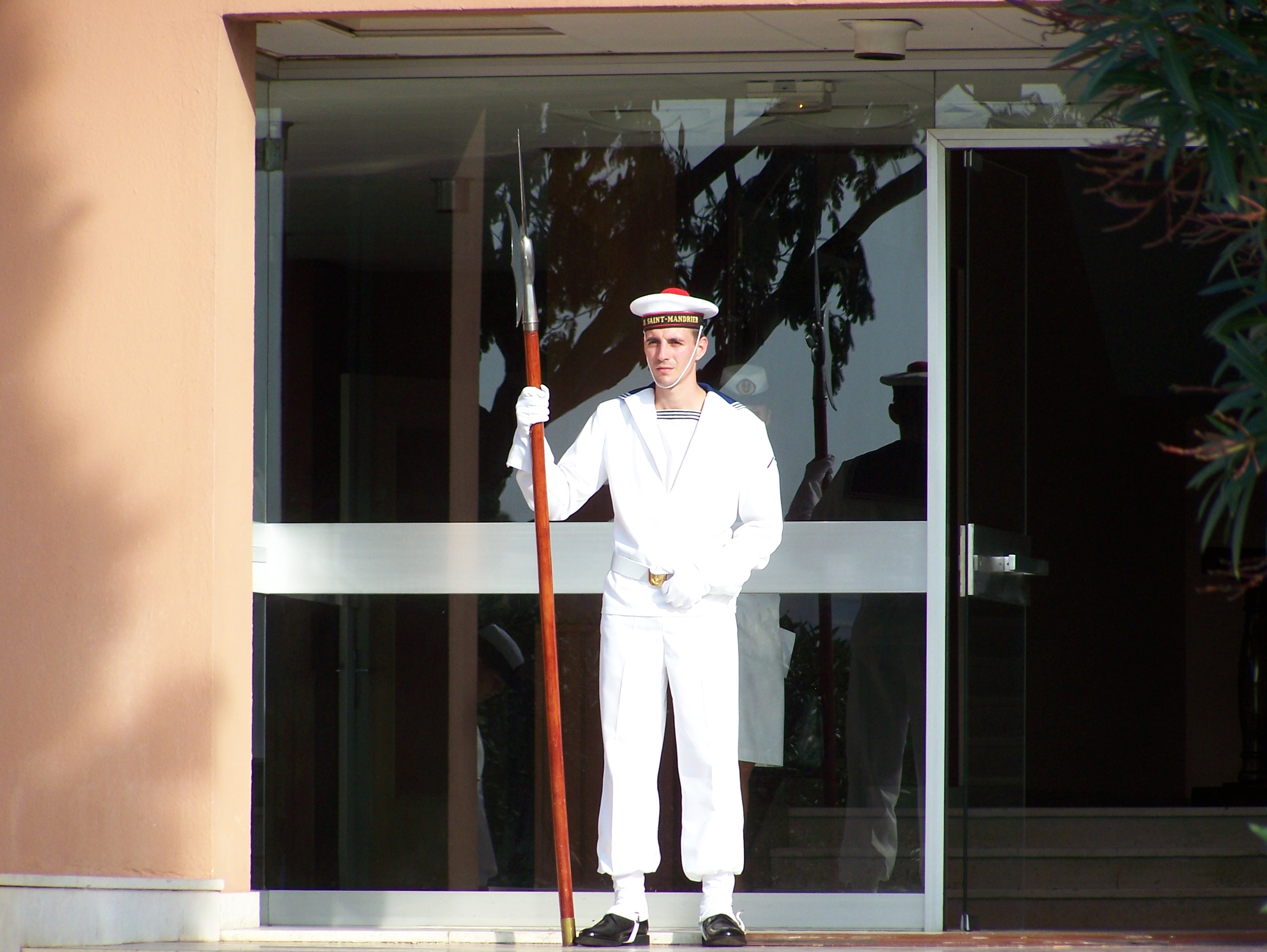 Les hallebardiers, dont le nombre est limité à deux pour les officiers généraux et à un pour les capitaines de vaisseau, ne peuvent être mis en place qu'à l'occasion de cérémonies ou de réceptions auxquelles ils assistent personnellement, car la hallebarde est considérée comme un symbole de commandement.